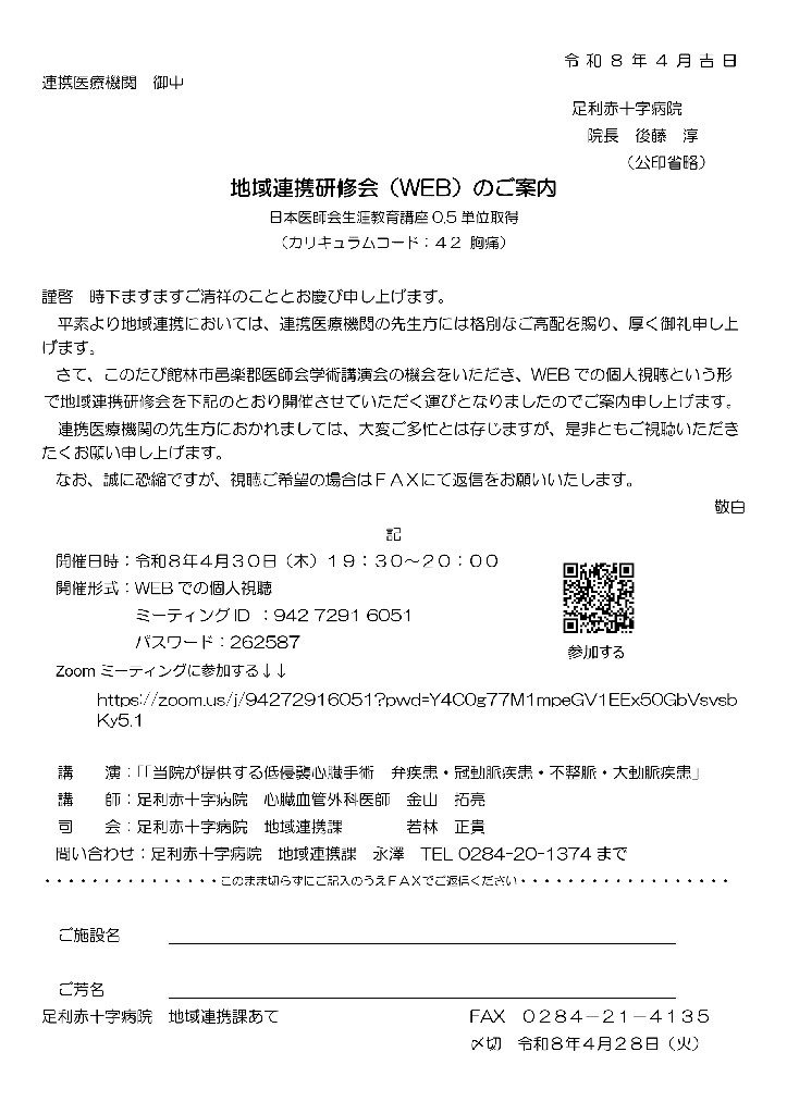地域連携研修会(足利日赤)のご案内【4月30日・木】