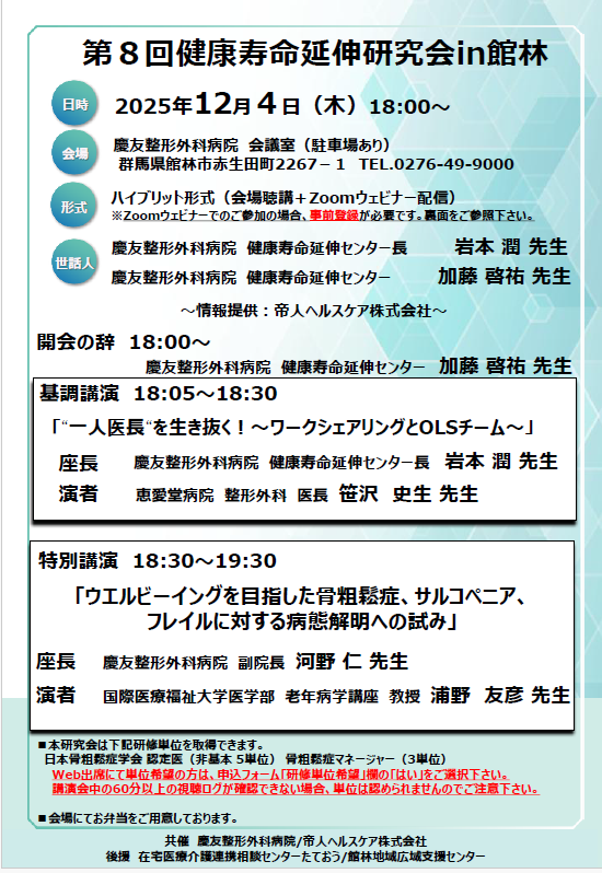 会 場:慶友整形外科病院 会議室(駐車場あり)